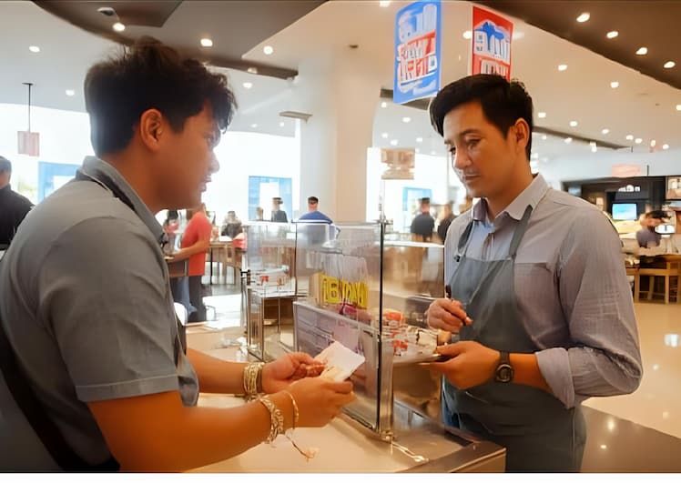 多くのフードコートでは、プリペイドカードを購入してチャージするシステムが主流です。