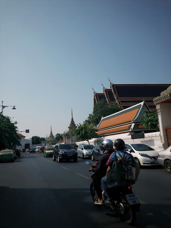 渋滞が多いバンコクでは、バイクタクシーが時間短縮にめちゃくちゃ便利。