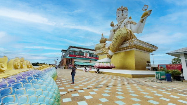 周辺にはカラフルな仏像や七色の龍の像、屋台エリアも広がっていて、ちょっとした“テーマパーク”のような雰囲気です。