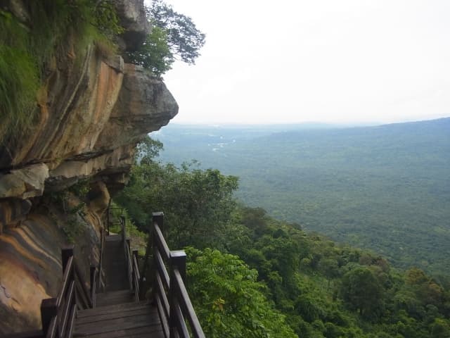 プレアヴィヒア寺院そのものは見えにくいものの、周囲の山並みや遺跡のある台地を眺めるだけでも歴史の重みを感じる体験になります。