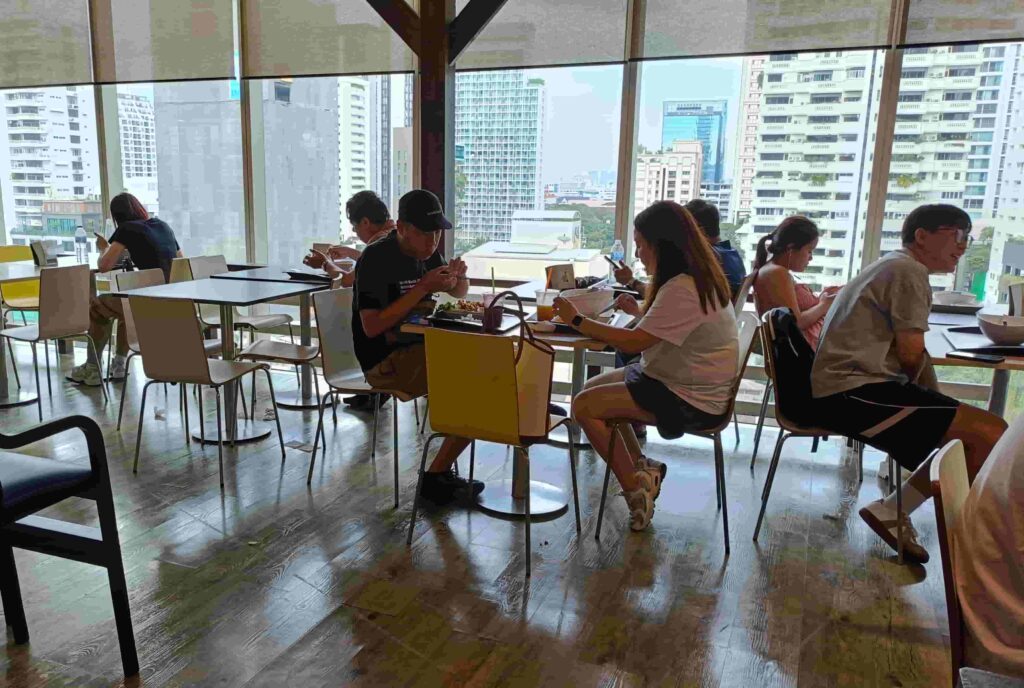 • 座席の確保:一番奥の窓際の席は大きな窓が開放的で、アソークの街並みを見ながら食事が楽しめます。