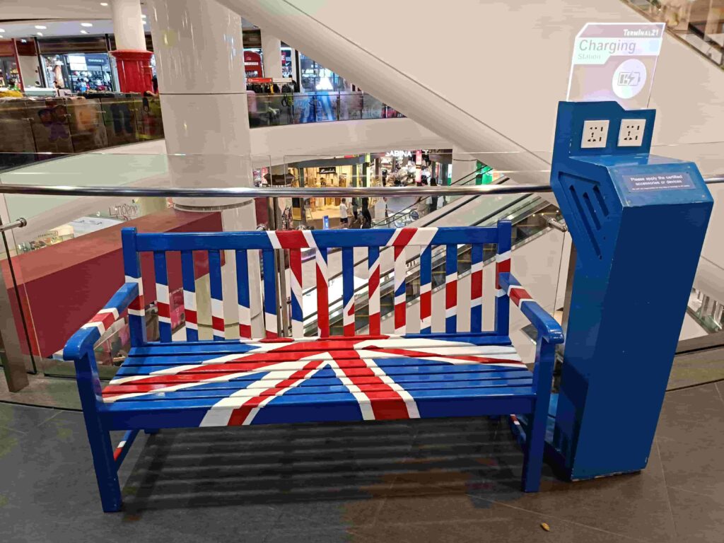 建物内には、あちこちに腰を下ろせるベンチやスマホのチャージ設備があり、Free WiFi完備なので、とくに買い物や食事にお店に入らなくても快適に過ごせるところがたくさんあります。